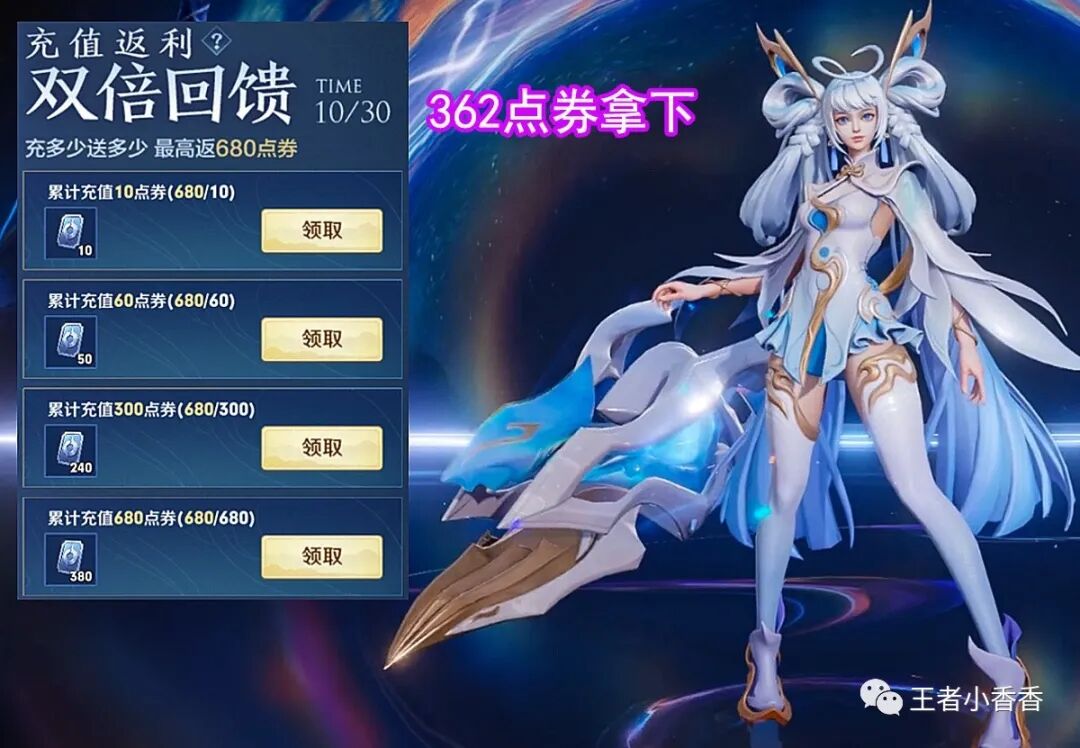 玩家参与了双倍回馈活动赠与的680点券,再加上此次孙尚香的新皮肤获取有首周折扣+专属活动388优惠券最终只需要1042点券,参与过双倍回馈活动的玩家也就只需要362点券就可以获取孙尚香的这款限定传说皮肤了。