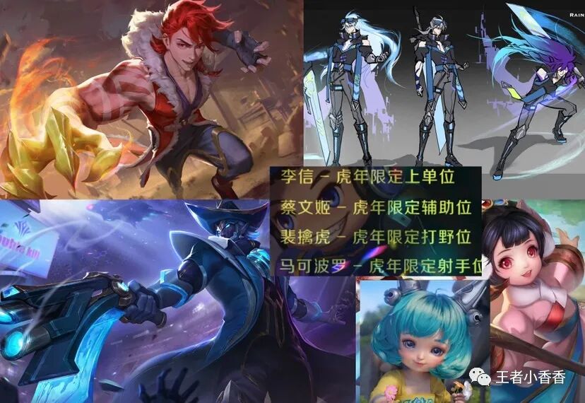 年限皮肤都是限定皮肤,一般都是总共5款的,5款皮肤会给到不同位置的英雄,因此除了杨玉环的新皮肤以外,虎年限定皮肤还有其他四款,分别会给到战士、射手、辅助、打野等四个位置。有大咖爆料其他四款虎年限定皮肤会给到李信、马可波罗、蔡文姬、裴擒虎,刚好对应了不同的位置,而且这四位英雄在共研服中都有新皮肤格子,因此关于虎年限定的真实性还是比较大的。