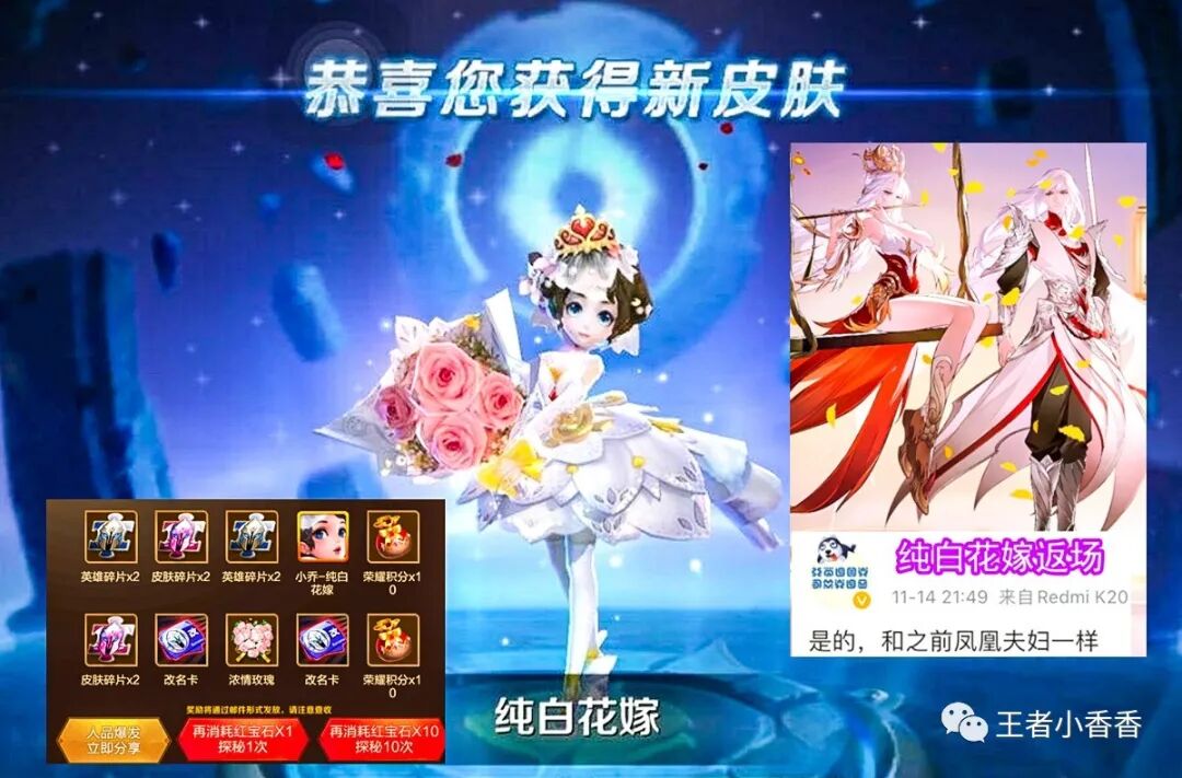瑶、貂蝉联名婚纱来袭,小乔——纯白花嫁、周瑜——真爱至上即将返场,黄忠、孙策机甲皮肤帅哭,新源梦皮肤给到元歌。
