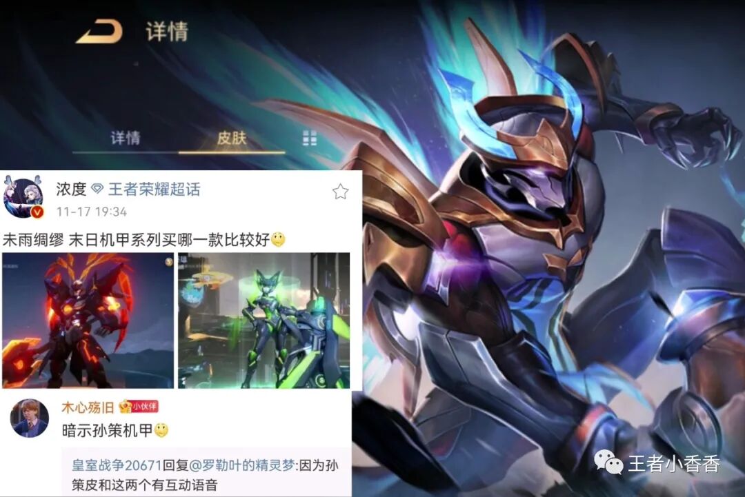 除了孙策以外,后羿也将会迎来一款机甲皮肤,铠——绛天战甲上线时曾出现过后羿机甲皮的彩蛋,因此后羿也会有一款与绛天战甲同系列的皮肤,而且后羿还有一款荣耀典藏在制作中,这款机甲皮肤很有可能就是荣耀典藏品质的。