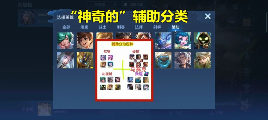 从整体上来说,根据辅助英雄的身板,我们可以将其划分为软辅或者硬辅,如果细分的话,辅助的种类还是比较多的,通常情况下,玩家会把辅助分为坦克类辅助、均衡类辅助、节奏类辅助、功能增益类辅助,以及“心态”类辅助。