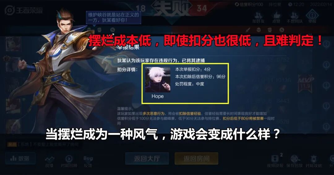 摆烂是一种消极的状态,摆烂成风预示着王者荣耀开始了下坡路。