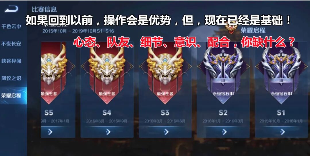王者荣耀运营6年之久,能够坚持到现在的玩家,即使没有达到过较高的段位,也拥有着不输荣耀的游戏理解,达到过较高段位的玩家,虽“战功赫赫”,但,游戏理解已被其他玩家追上。