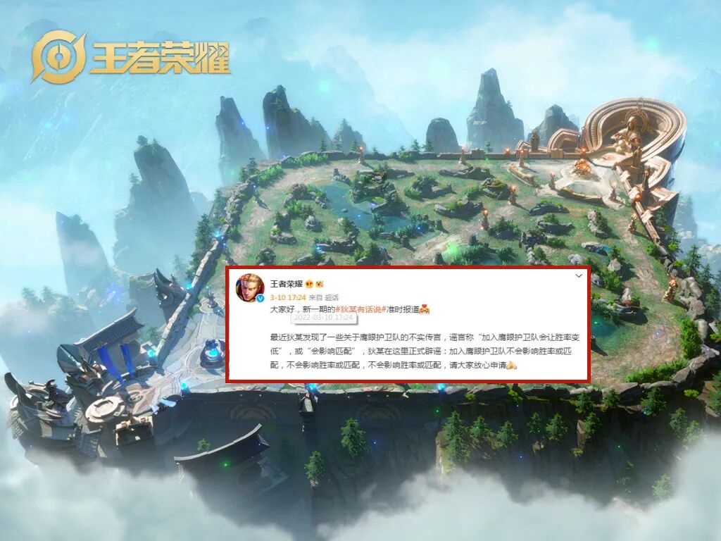 在论坛节奏四起的情况下,王者荣耀官方最终还是发布公告进行公关,并称鹰眼护卫队不会影响胜率和匹配。