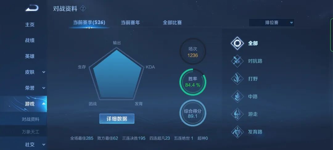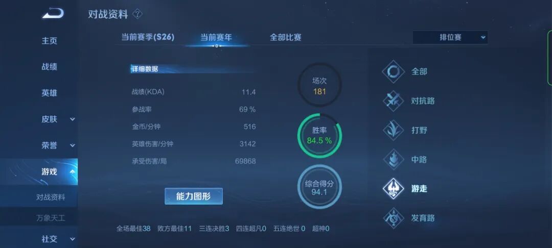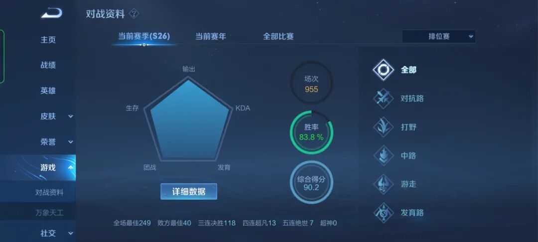 上述两个ID,不仅仅是综合数据优异,他们每个分路的数据都非常优异,而且每条分路场次都有数百场。