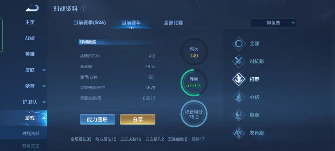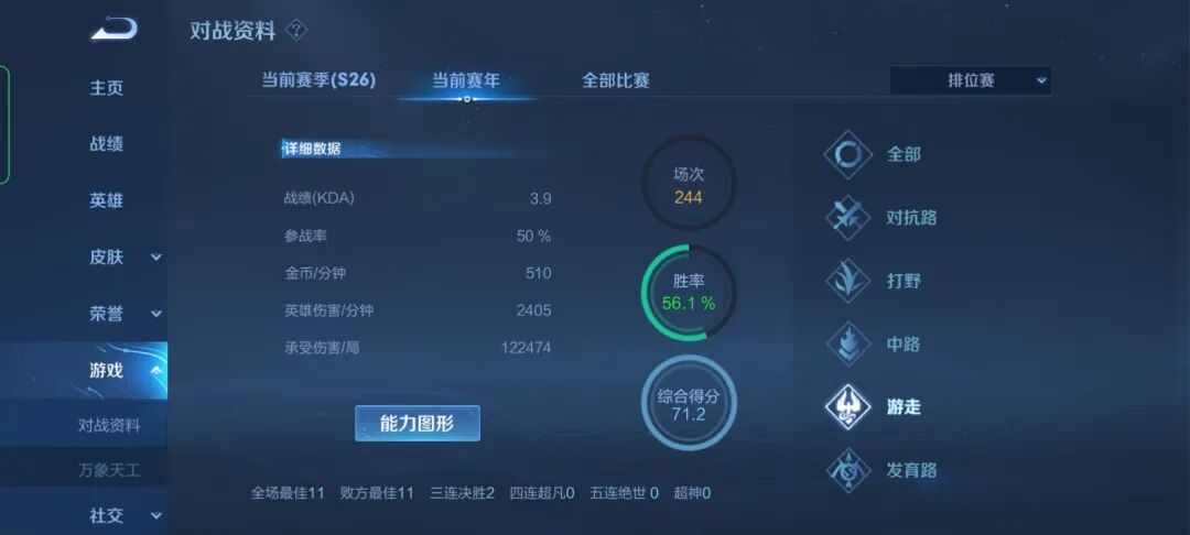 所以,在玩王者荣耀的过程中,要么保证自己的每分钟经济达到一个较高的水准,要么就通过参团率混,要么就学会拖时间。