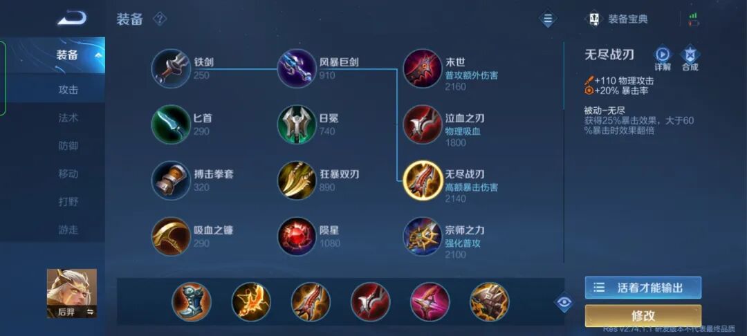 除了环境上的调整以外,射手偏爱的无尽战刃被调整为后期装备,其余射手装备也均被调整,使得射手有了鲜明的出装对比,唯一不受影响的只有艾琳。