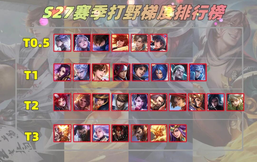 基于版本对野区的保护,在S27赛季中,部分前期羸弱的打野排名不受入侵的影响,在这样的框架下,打野英雄的排名由英雄机制、收割能力、机动性、优势期早晚及发育期长短决定。