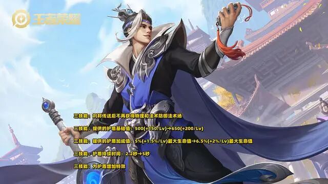 2、刘邦基础护盾&技能等级加成分别增加50点,基础护盾加成&技能等级加成分别提升1.5%、0.5%,护盾持续时长由2.2秒变5秒。