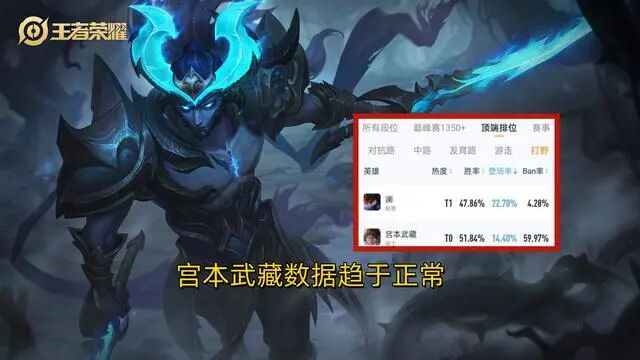 宫本武藏数据跌落幅度明显,但,却是一个正常英雄应该有的表现。