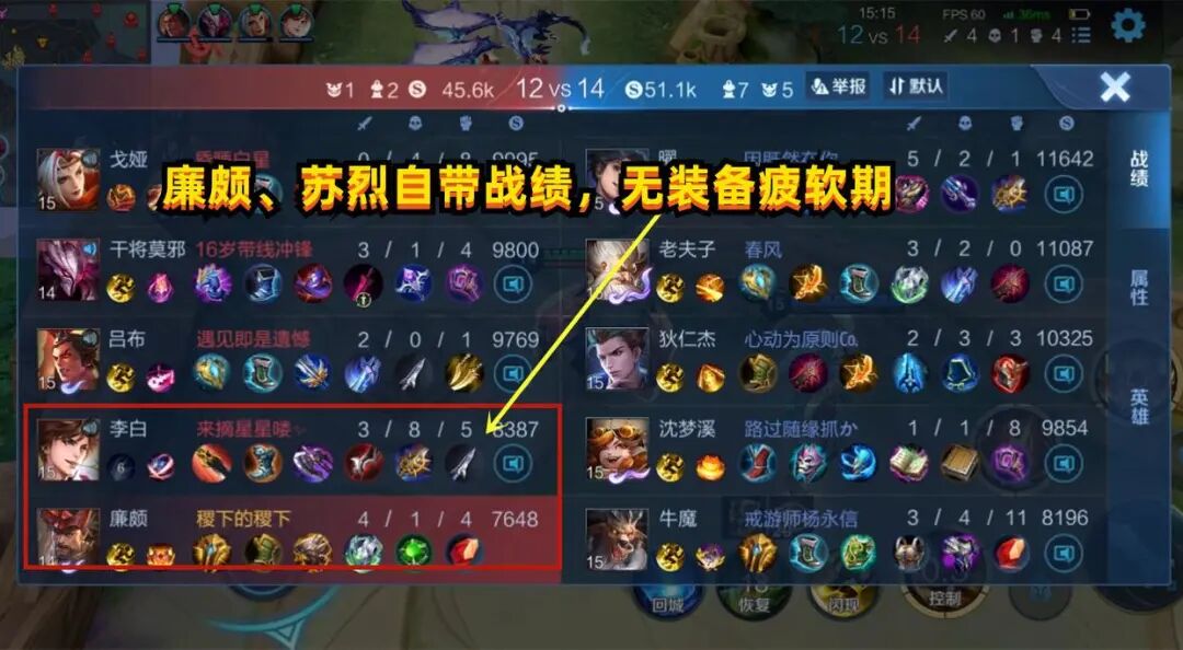苏烈和廉颇两位主坦克英雄,对装备的依赖程度一般,非常适合不愿意过多思考,且喜欢全期打架的玩家。