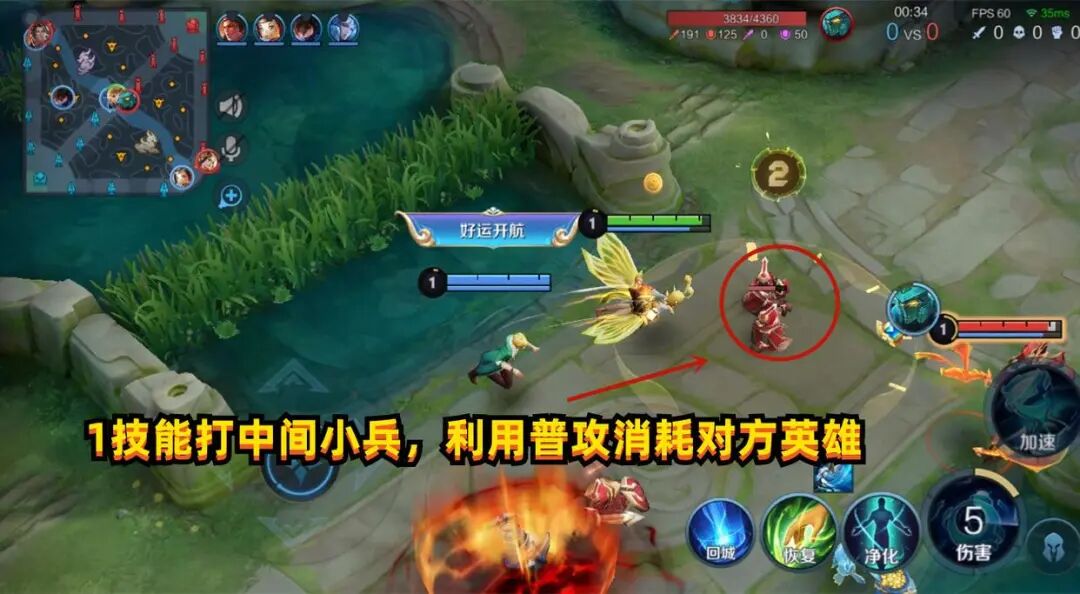 在使用孙膑时,前期一定要打出频繁的消耗,使用1技能打中间小兵,利用普攻消耗对方英雄,不然效果会大打折扣。