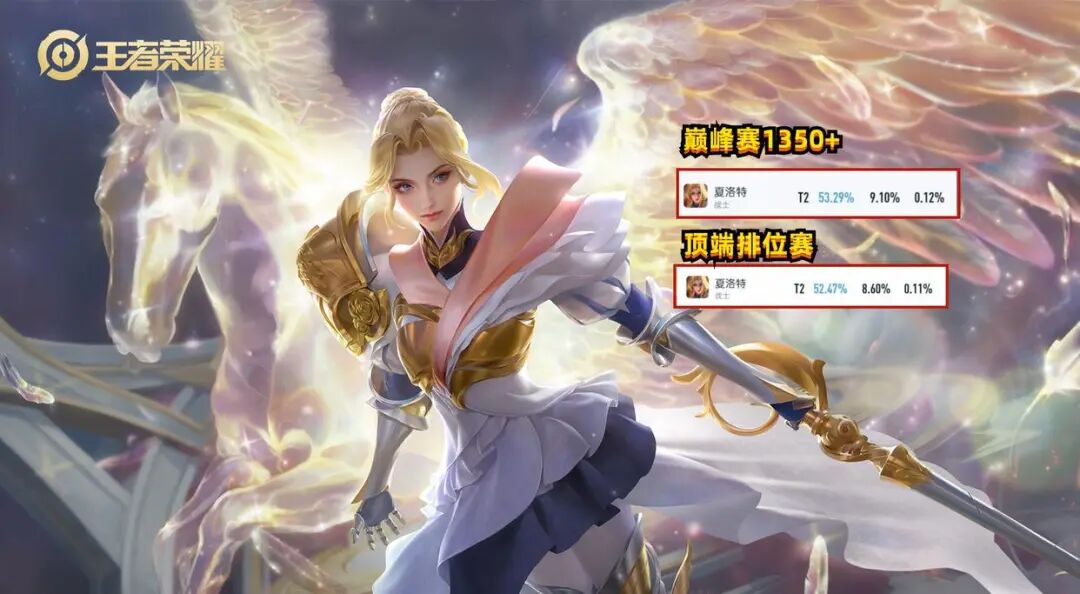 因此,S30赛季我们首推的对抗路上分英雄是夏洛特,目前夏洛特在巅峰赛1350+及顶端排位赛中,胜率均在前5之列,而且出场率不俗。
