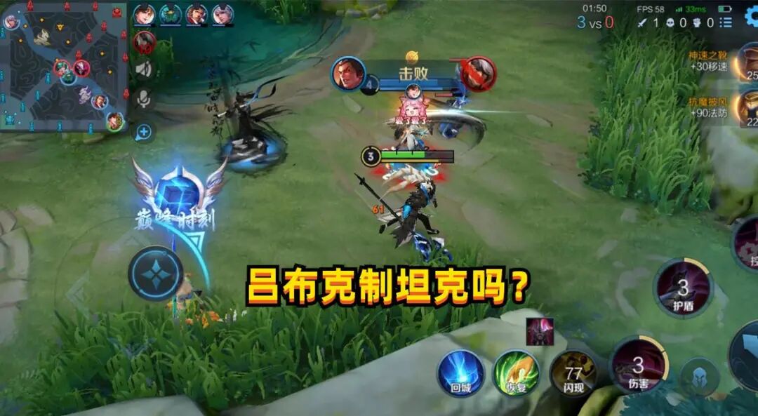 2、吕布和坦克的关系,要么是吕布开局被克4级后压力逐渐解除,要么是4级后略被克制、前中期被克,6-8分钟后克制关系扭转。所以,我们在对手精通坦克的情况下,可以等,但是,等的过程中要么风筝对手,要么盯紧对方视野。