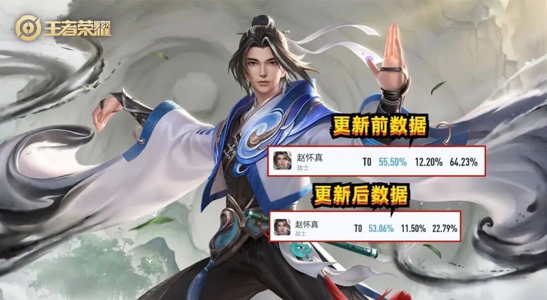 在顶端排位赛当中,赵怀真的Ban率下降41.44%,胜率下降2.44%,乍眼看上去,下降非常多,但,实际上赵怀真胜率依然列全对抗路第4,出场率仍高达11.50%,可谓是坦克英雄中机制上的天花板。