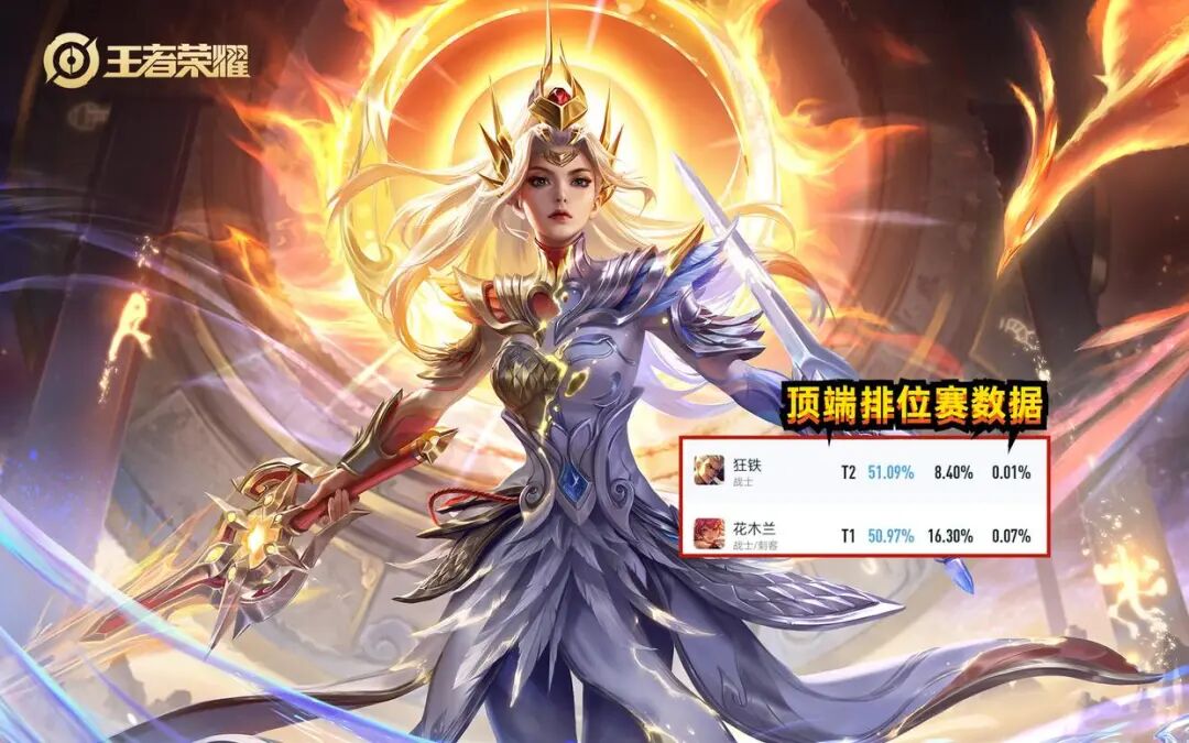 前面我们提到坦边和战刺边的两极分化,在数据上来看,目前,对抗路胜率和出场率综合数据不错的英雄,主要有老夫子、蒙恬、狂铁等重装战士,以及偏向刺客的花木兰。
