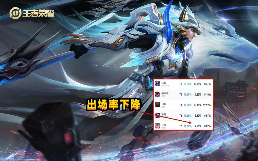 所以,顶端排位当中,马超元歌的胜率仅下降1%左右,但,目前仍在正常标准,只不过,元歌的出场率下滑明显,相较于之前版本,元歌的出场率下降近7%。