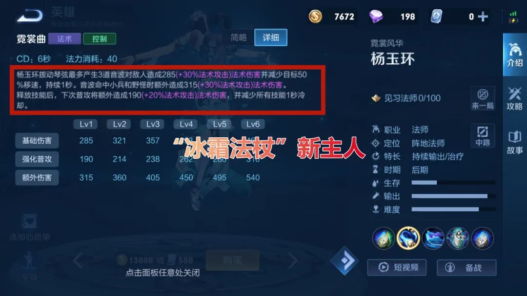 3、“冰霜法杖”改版,法系辅助伤害得到补偿,但不如痛苦面具伤害高,不过,其带来的poke环境能够起到变相加强周瑜、杨玉环、姜子牙、弈星的作用。