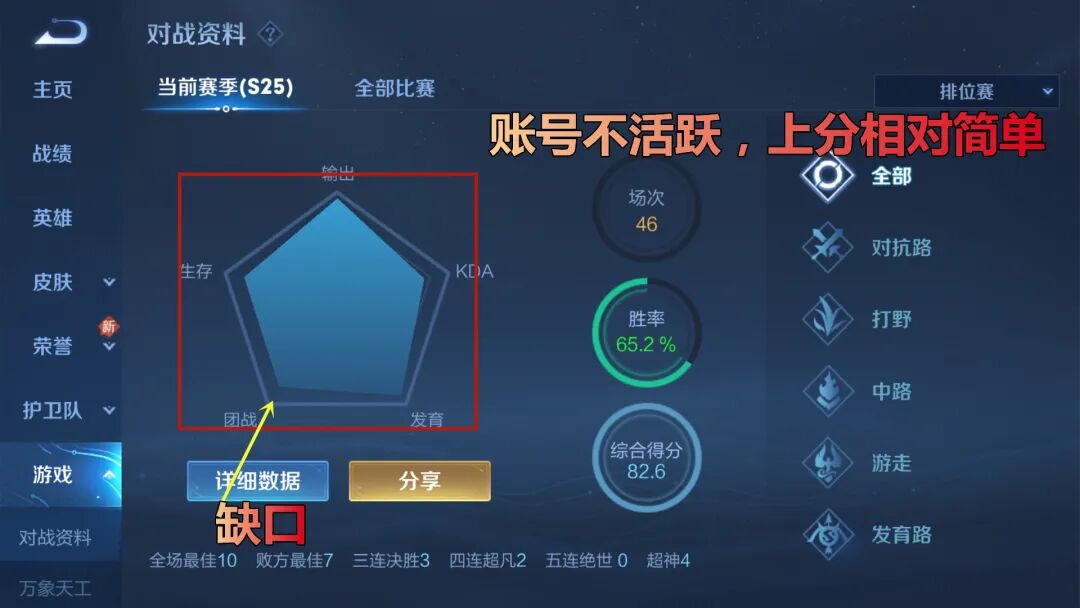 运营得当单排上王者依然简单,运营不好上王者同样非常难,待不活跃账号变成活跃账号就会“乖乖”被ELO支配。