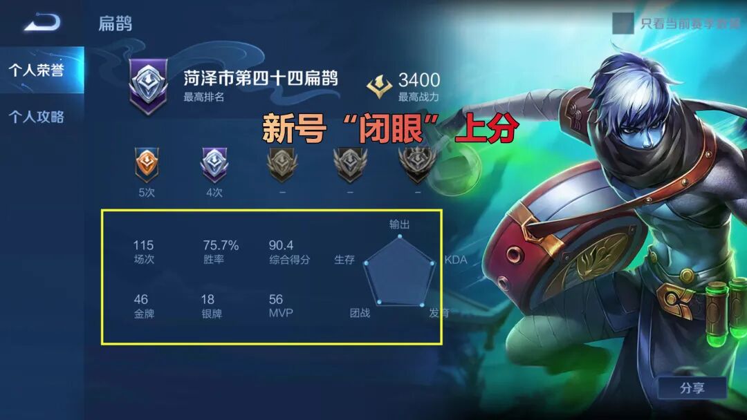 “纯新账号”是三种账号中最容易上分的账号,哪怕你是新手,也能用较高的胜率打上王者段位。