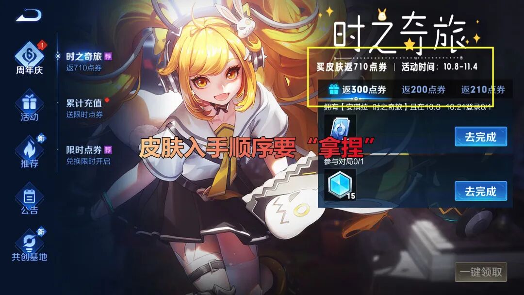 “孙悟空”新皮以打折的方式出现,而“安琪拉”则是买返点券的方式,在这种情况下,如果先买“安琪拉”皮肤,“孙悟空”皮肤就算等于王者荣耀白送的。所以,有意入手的玩家,一定要注意顺序,不然则会花冤枉钱。