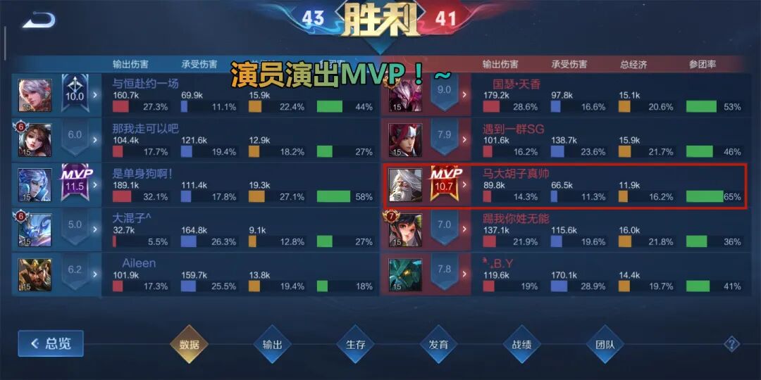 虽然,上面的对局是老马有意为之,但是,对于路人来说无意也能打出MVP,毕竟,这个MVP是由KDA决定的。
