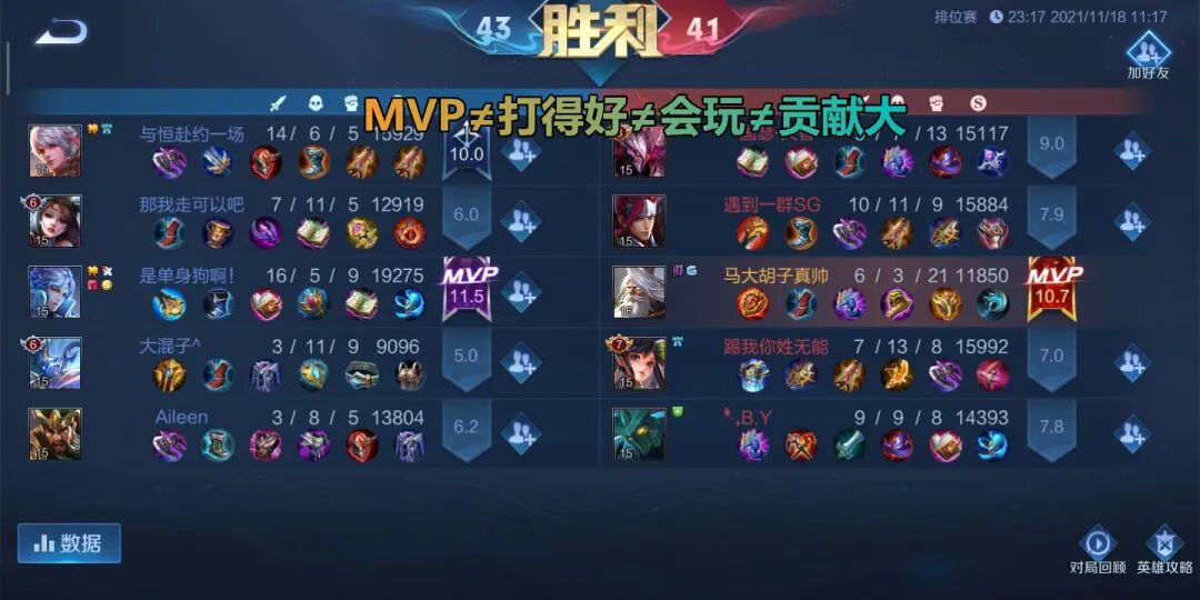 它既不能证明我厉害,也不能证明我在当场的作用,它只是一个按照KDA结算的数据而已,它不能说明你的队友不想赢,也不能说明你的队友没有任何贡献。