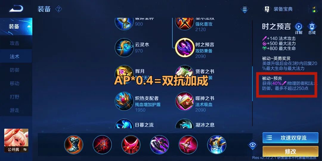 (时之预言)140+160=300ap,300*0.0025*6=4.5(免伤),300*0.4=120(双抗)