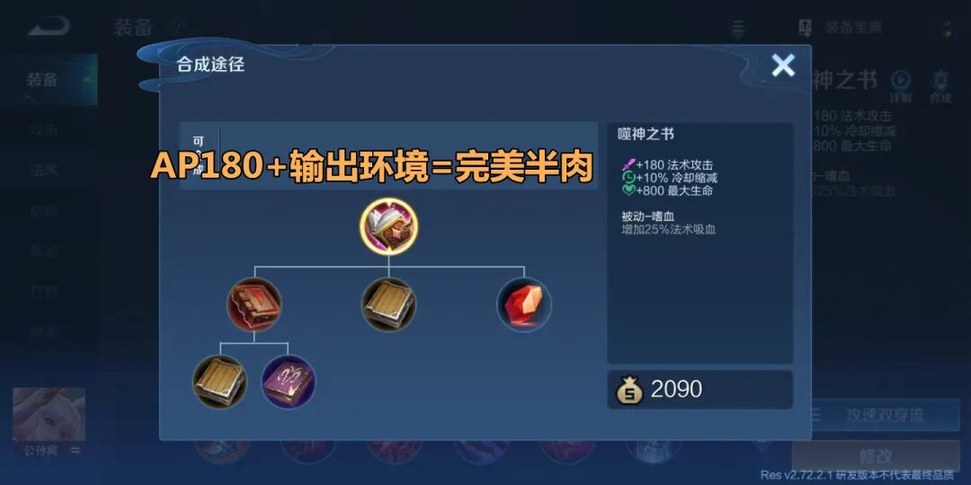 结论:贤者披风和时之预言、法系吸血书结合,效果开始凸显,该装备适合半肉打法出装。