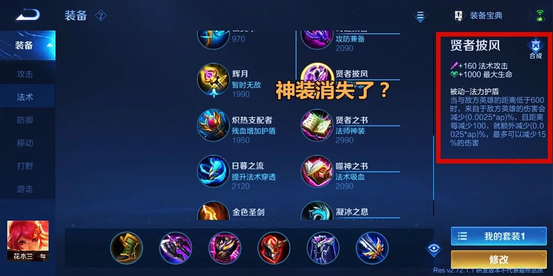 结论:贤者披风属性不稳定,偏后期选择,单出一件法装的情况下收益较低,前期收益不敌小件防御装,即使是前期裸出时之预言享受56点双抗也比贤者披风带来的收益高。