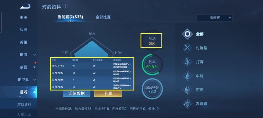 也许是赛季末分数迭代,中端局上移带来的结果,不过,这种现象目前已经成为普遍现象,于游戏和玩家而言,这都是不利的。