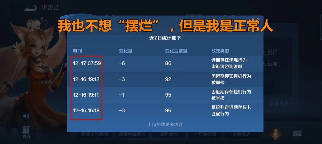 当然,“黑化”和摆烂玩家的出现是合理的,谁都有疲惫心累的时候,也正因为累了,所以,发挥不出来自己的水平,再遇到不太顺利的环境,输赢就纯靠运气了。