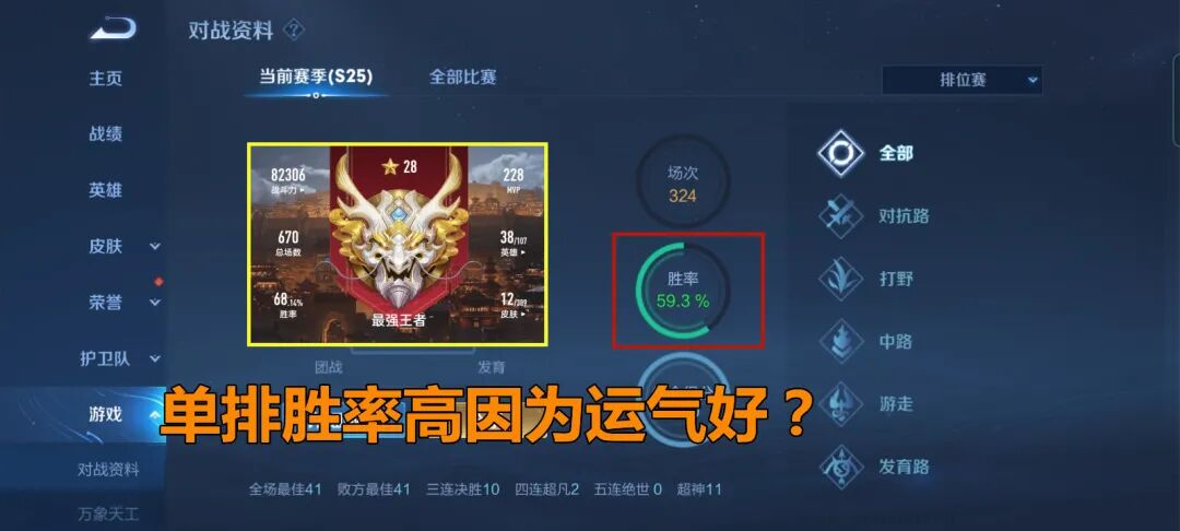 当然,也有很多玩家上不去分的原因是英雄池、操作、节奏能力、大局观的问题。不过,英雄池和操作的问题只会影响到1800分和荣耀段位的对局,至于大局观和节奏能力,我们在后面的文章当中将会详细解读。