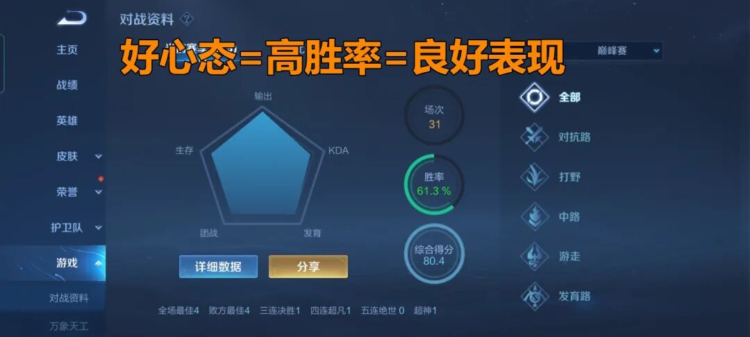 相信在调整心态以后,你的段位和游戏时的心情都会发生变化,因为只有心态好,才算是玩游戏。