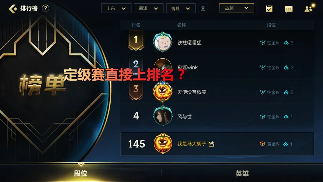 老马一点不熟悉英雄联盟,不过,在定级白银的时候,其名次已占全服前40%,占县市的前0.1%,待进入黄金段位以后,老马赫然发现自己使用的英雄进入了县市排名,段位也进入了县级前列……
