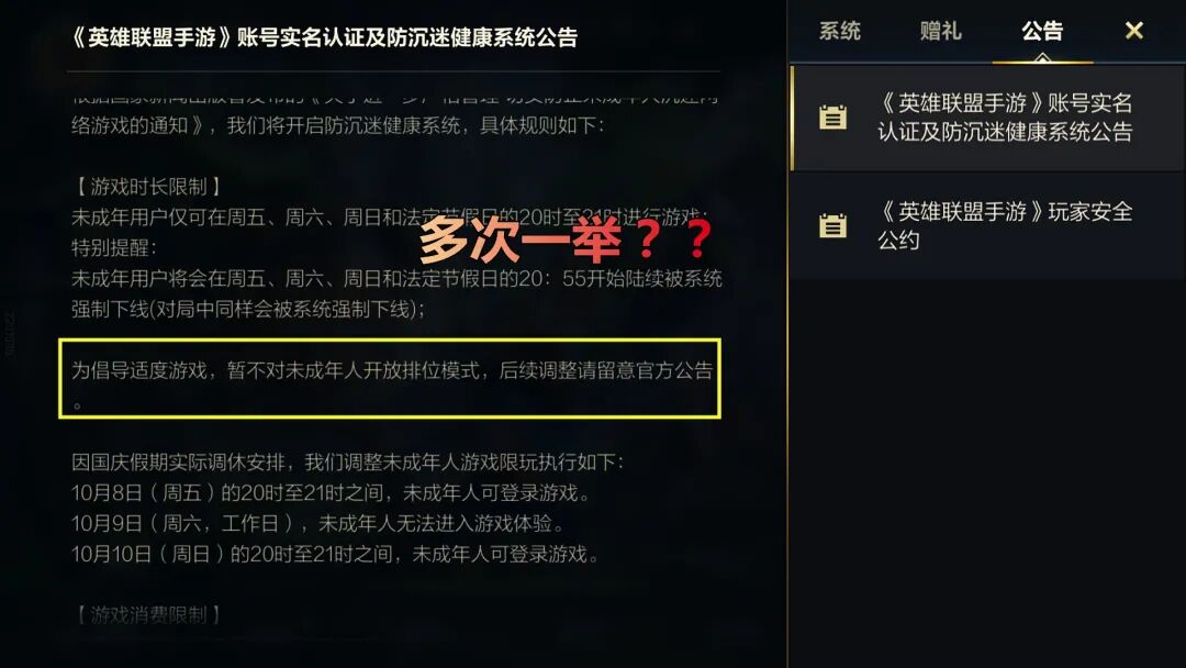 首先,英雄联盟手游不允许未成年人参加排位赛,对于这则设定老马认为多次一举。