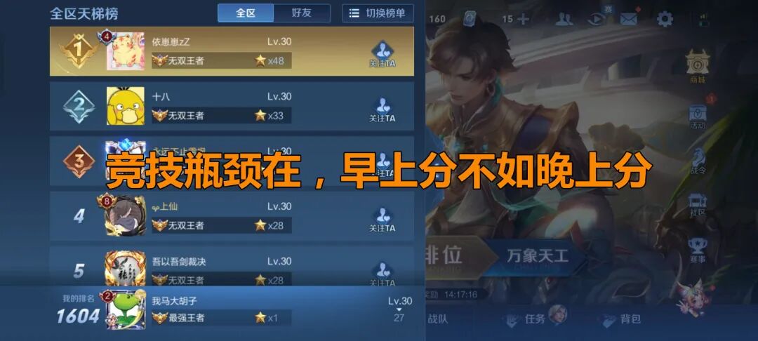 王者荣耀每个版本都有不同的打法,只有熟悉了版本,才能找到游戏的快乐,如果单纯地用以前的经验,去应对新版本,且妄图急功近利迅速上分的话,是不切实际的。