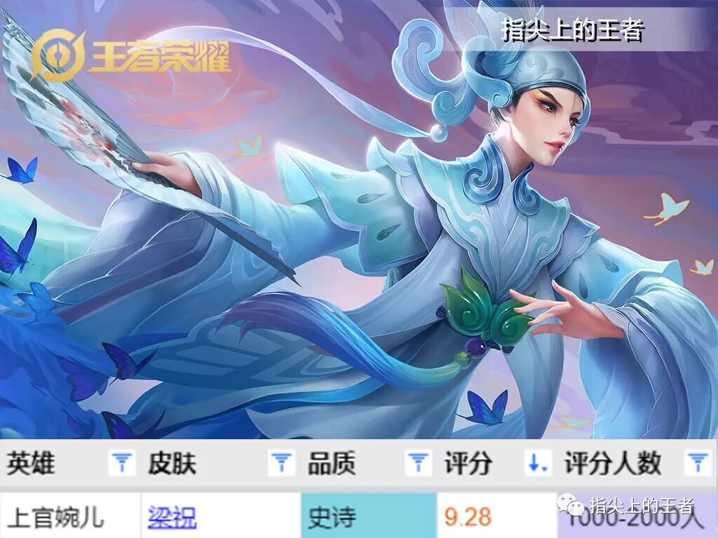 王者荣耀四周年限定皮肤,上官婉儿的这款皮肤当时的玩家的评价很高,梁祝的故事普及率实在太高了,是唯一一个在世界上广为流传的中国民间传说,谁又不会哼哼几句呢?