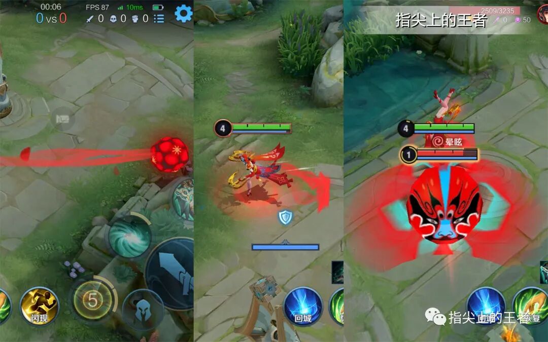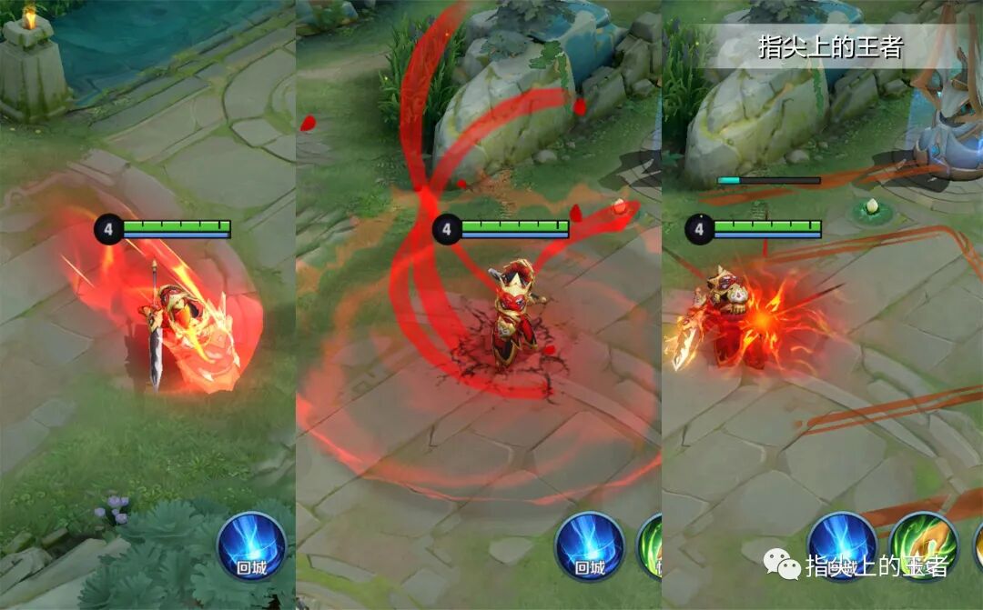 大招踩到目标之后出现一个巨大的脸谱特效,这是这款皮肤的净化所在,之后手上缠着红绸的效果,就是大招开启后的加速持续时间。