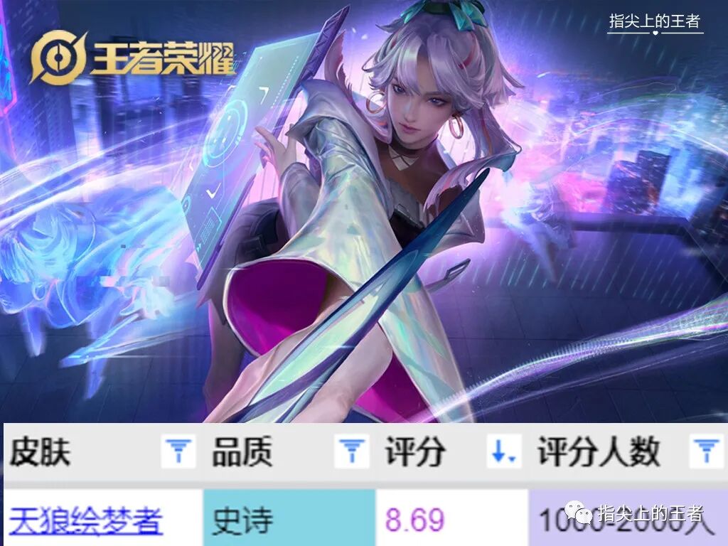 作为天狼星皮肤中的牌面,这款皮肤的评分高达8.69,已经非常接近最顶尖的皮肤了,这个皮肤的设定就挺有意思,很多人没看懂出场动画中一顿乱画到底画的是什么?其实换个角度你能看到比较抽象的“kpl”字样,上官婉儿就两款高级皮肤,梁祝在周年庆限定皮肤中已经无敌了,而这一款同样有着高分,所以下一个婉儿皮肤的质量会低吗?
