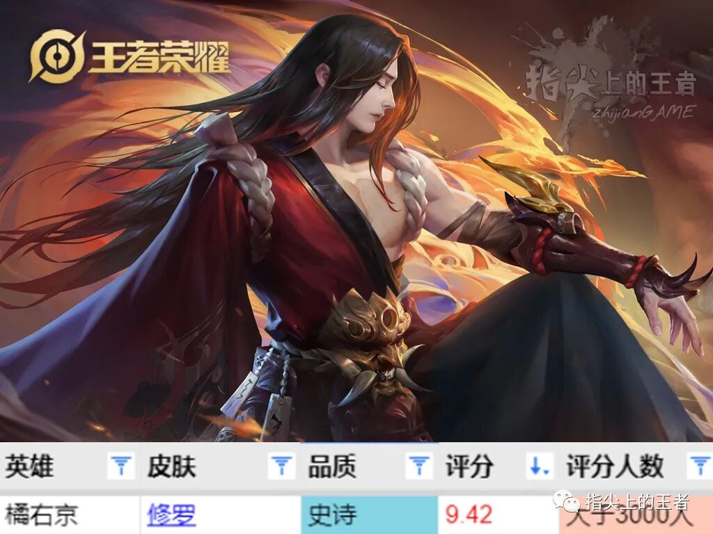 修罗竟然输给了不知火舞的魅语,这是我没想到的,目前修罗的评分9.42,甚至能站在所有皮肤的最顶端了,当时上线的时候,光一个出场动画就已经让我找不到拒绝的理由了。