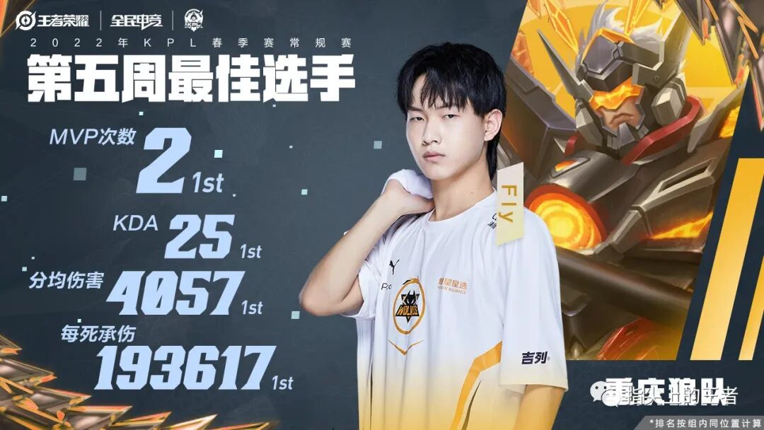 fly终于拿到了 最佳选手,这个在总决赛中永远都很c的男人,终于在常规赛中也证明了自己,凭借着多项第一的数据,他终于拿到了这个周最佳,或许这个荣誉在他身上非常的不起眼,但是至少也证明了,fly是老将,但是水平还是在线的。
