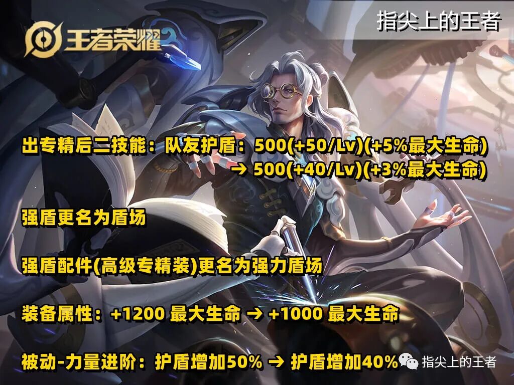 这次的调整,削弱了位队友增加的护盾量,削弱了高级专精装附带的生命值,也削弱了达到生命值档位额外增加的护盾量。