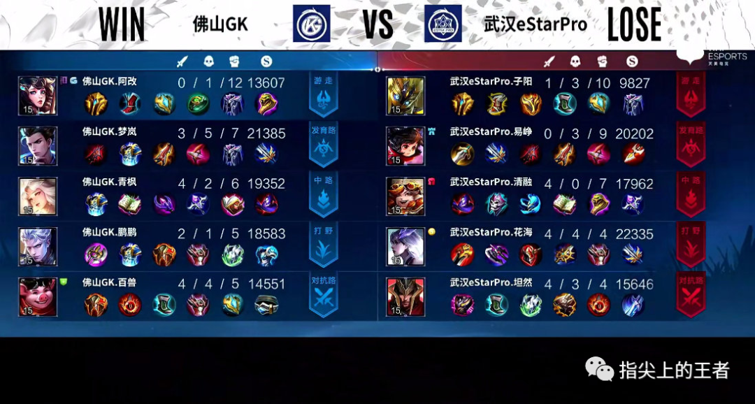 这场比赛看下来,给我的感觉就是GK不止进攻更刚猛,守家时候的韧性也非常可怕,两次大逆风翻盘,如果是其他的队伍我可能会想“这个队伍的终结能力这么差吗”?但他们是estar啊,我只能说春之GK华丽丽的回归了,再也不是任人拿捏的战队,未来可期。