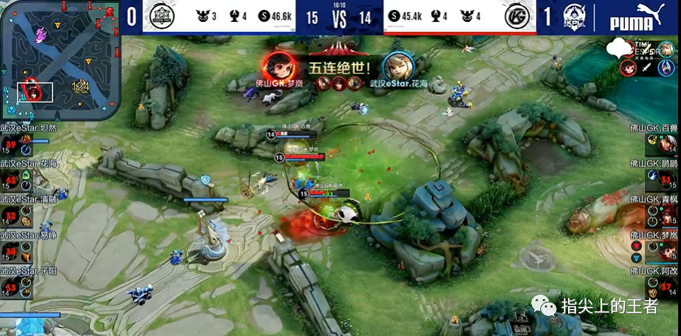 GK用了拖之大法,硬生生将对局拖到了露娜的劣势期,虞姬的强势期,在22分40秒的龙王团中,鹏鹏抢到了龙王,同时几乎团灭了estar,GK直接来了个超级大逆风翻盘,就是这么刺激。