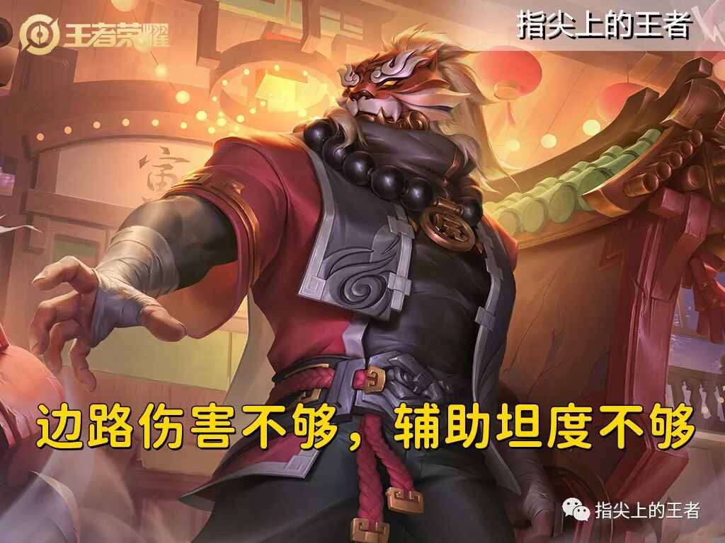 去年连续加强了两次,现在看来并没有起到关键的作用,孙悟空却伤害吗?显然不是,弱在了前期不稳定的暴击伤害,弱在了守不住野区,弱在了控住了蓝就很难发育起来。