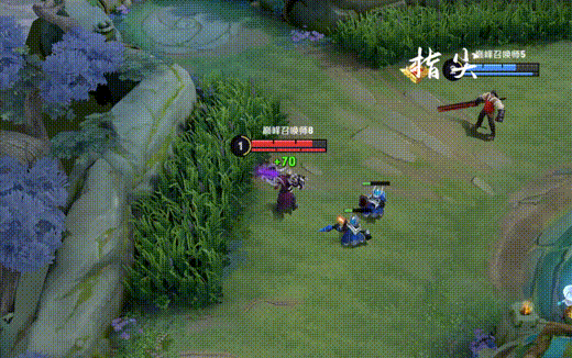 因为前期的优势,所以项羽在线上只能后手清兵,到第二波兵线出来之后再次被我打残,线上优势已经成型。