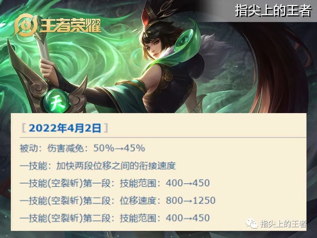 上次对木兰的加强,增加了1技能的移动速度,优化了手感,削弱了5%的免伤效果,这波调整直接让木兰来到了第二个巅峰,主要是连招更流畅,进场和离场因为移动速度快,所以更加游刃有余,对后排的威胁更大,因此木兰借着这波调整直接又回到了巅峰时期,54%的胜率,一直排在顶端局的前列,最离谱的是她的出场率已经向着30%逼近了。