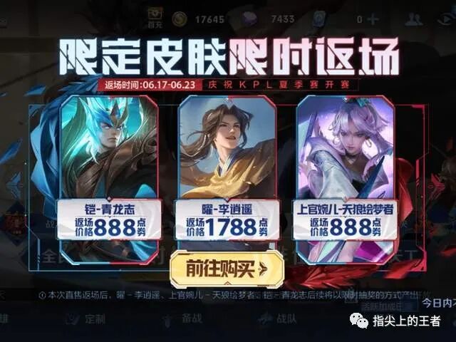 大家好我是指尖,三款限定皮肤返场,是多少玩家期待已久的活动,在各个平台中都能看到很多玩家表示想要逍遥哥哥,想要绘梦者,如今突然返场,想必很多人 已经在第一时间入手了吧,的确,好的皮肤一旦错过会让人难过,但在追求美好的同时,也要好好看看自己的钱包厚度,所以有些人犯了纠结病,三款皮肤如果只能买一个,该怎么选呢?