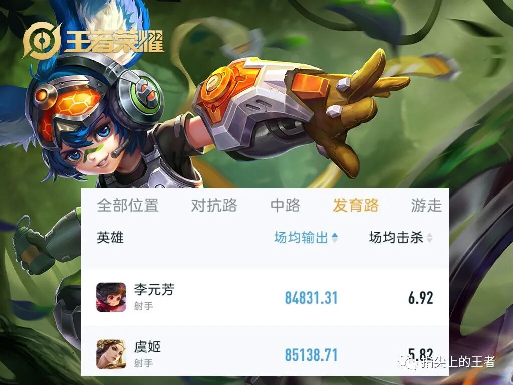 没想到吧,射手中输出倒数第一的李元芳,放在了打野阵容里竟成了榜首,因为打野大多打爆发,缺少持续输出手段,所以相较而言,李元芳反而成了其中的佼佼者。